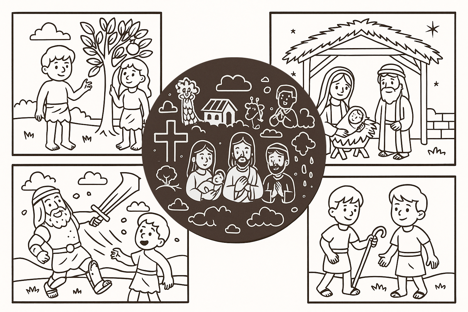 Uma coleção inédita de 200 desenhos católicos para colorir, com os santos da Igreja, os princípios da doutrina, as parábolas de Jesus e os mistérios da fé, tudo pensado para tocar o coração dos pequenos com verdade, beleza e cores.